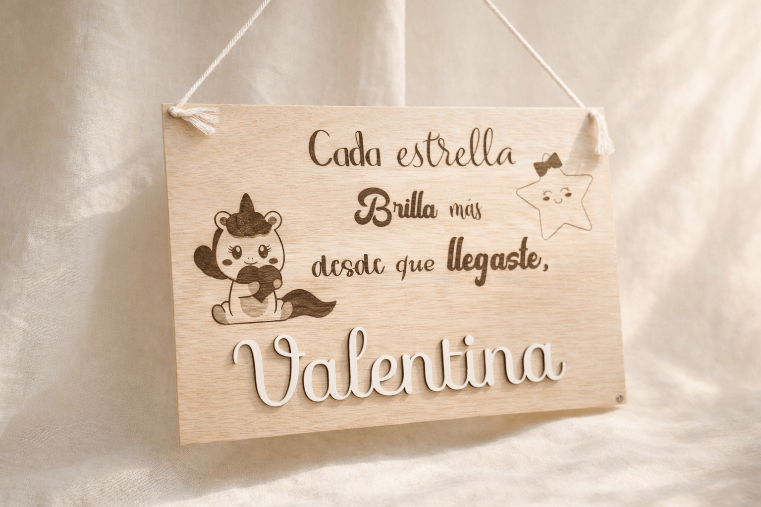 • Personalización completa: Elige la frase que deseas que aparezca en el cartel, junto con un nombre en relieve en color blanco que le dará un toque único.