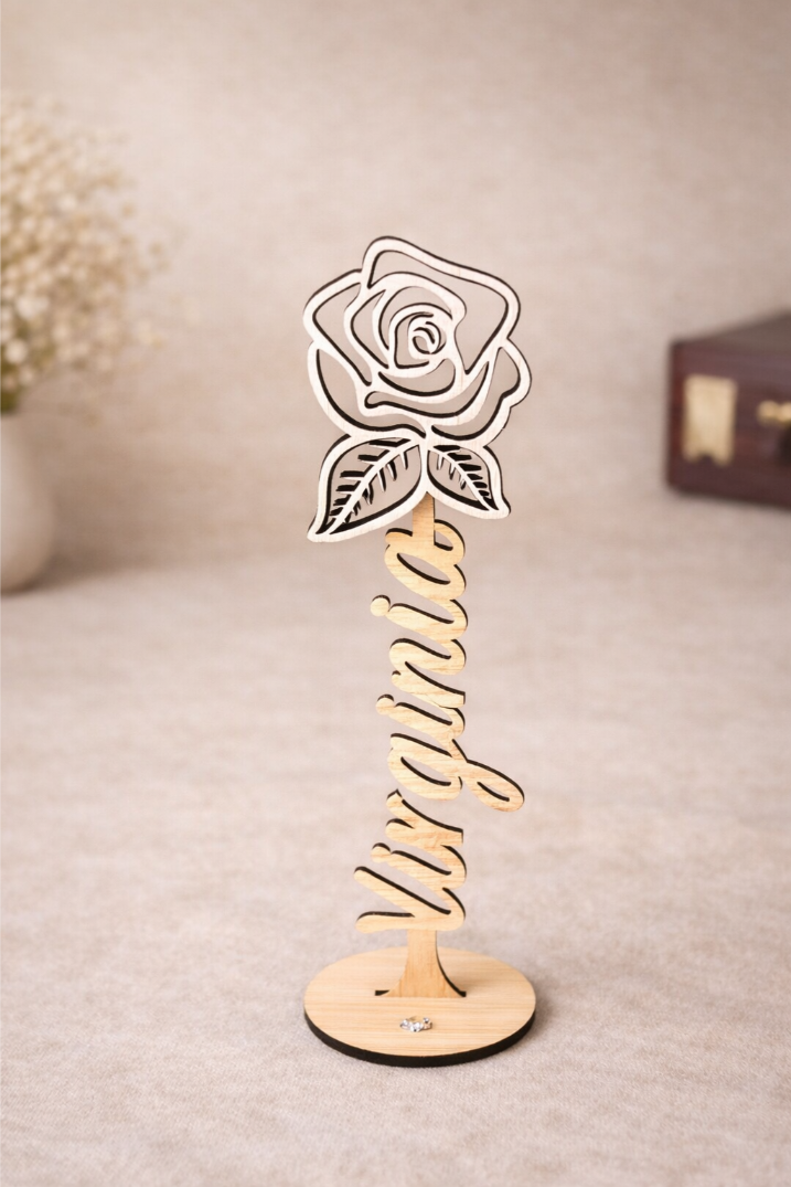 La flor de madera personalizada es un regalo único y significativo que combina elegancia y durabilidad. Es el detalle perfecto para sorprender a una madre, amiga o ser querido en cualquier ocasión especial, desde el Día de la Madre hasta un cumpleaños o aniversario. Con su nombre grabado, esta flor se convierte en un recuerdo duradero que siempre les recordará cuánto los aprecias.