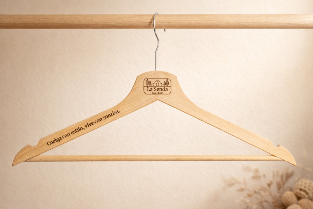 Las perchas con logo son mucho más que un simple accesorio; son una herramienta poderosa para reforzar la identidad de tu marca en cada detalle de tu negocio. Ya sea que las utilices en una casa rural, un alojamiento Airbnb, una tienda de moda o una oficina, estas perchas de madera personalizadas combinan funcionalidad, calidad y estilo. No dejes pasar la oportunidad de añadir este toque de profesionalismo y elegancia a tu negocio. ¡Personaliza tus perchas con tu logo y lleva la imagen de tu marca al siguiente nivel!